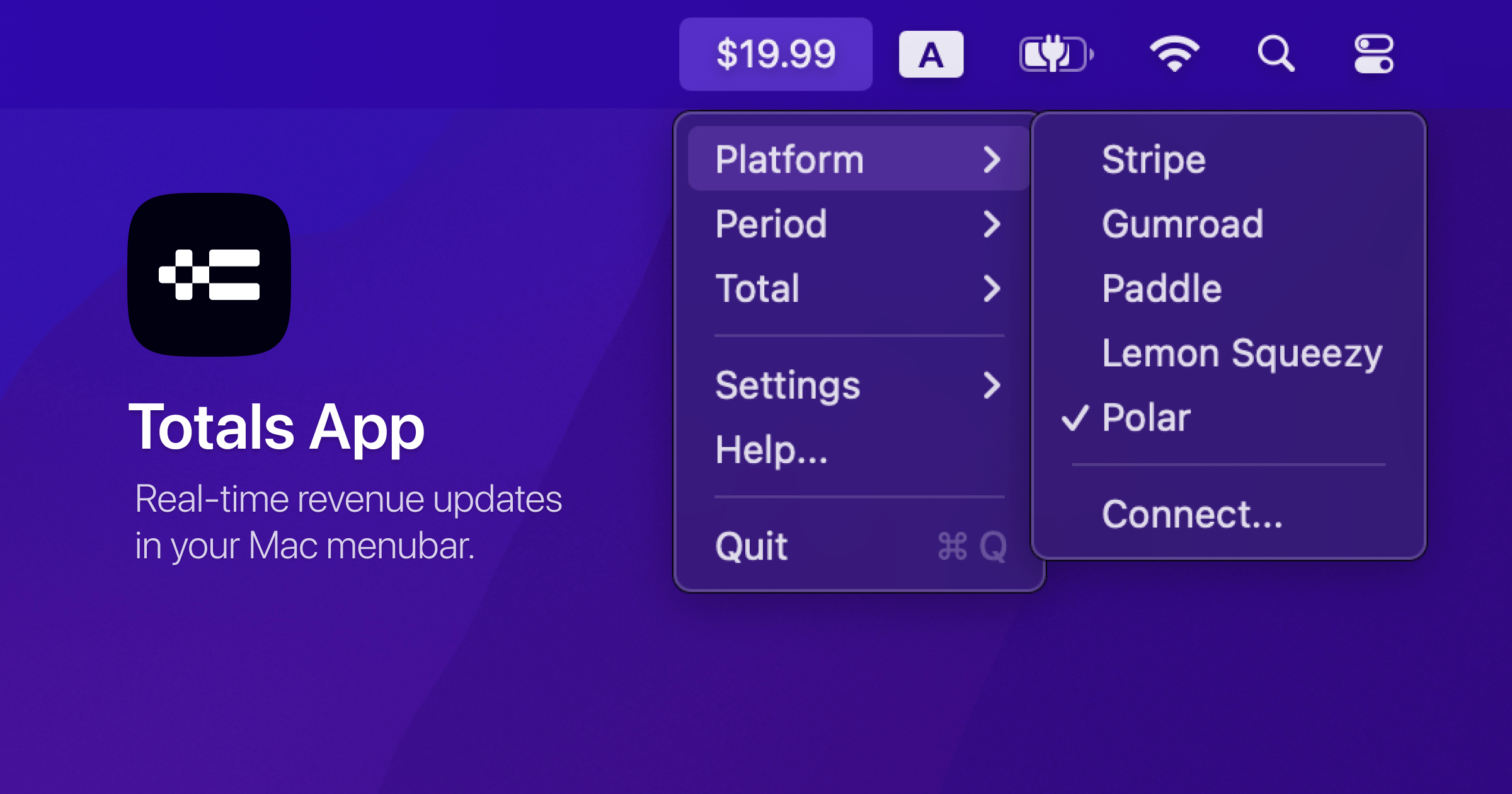| Short Description | Totals is a macOS menubar app that tracks real-time revenue from Stripe, Gumroad, Paddle, Lemon Squeezy, and Polar. |